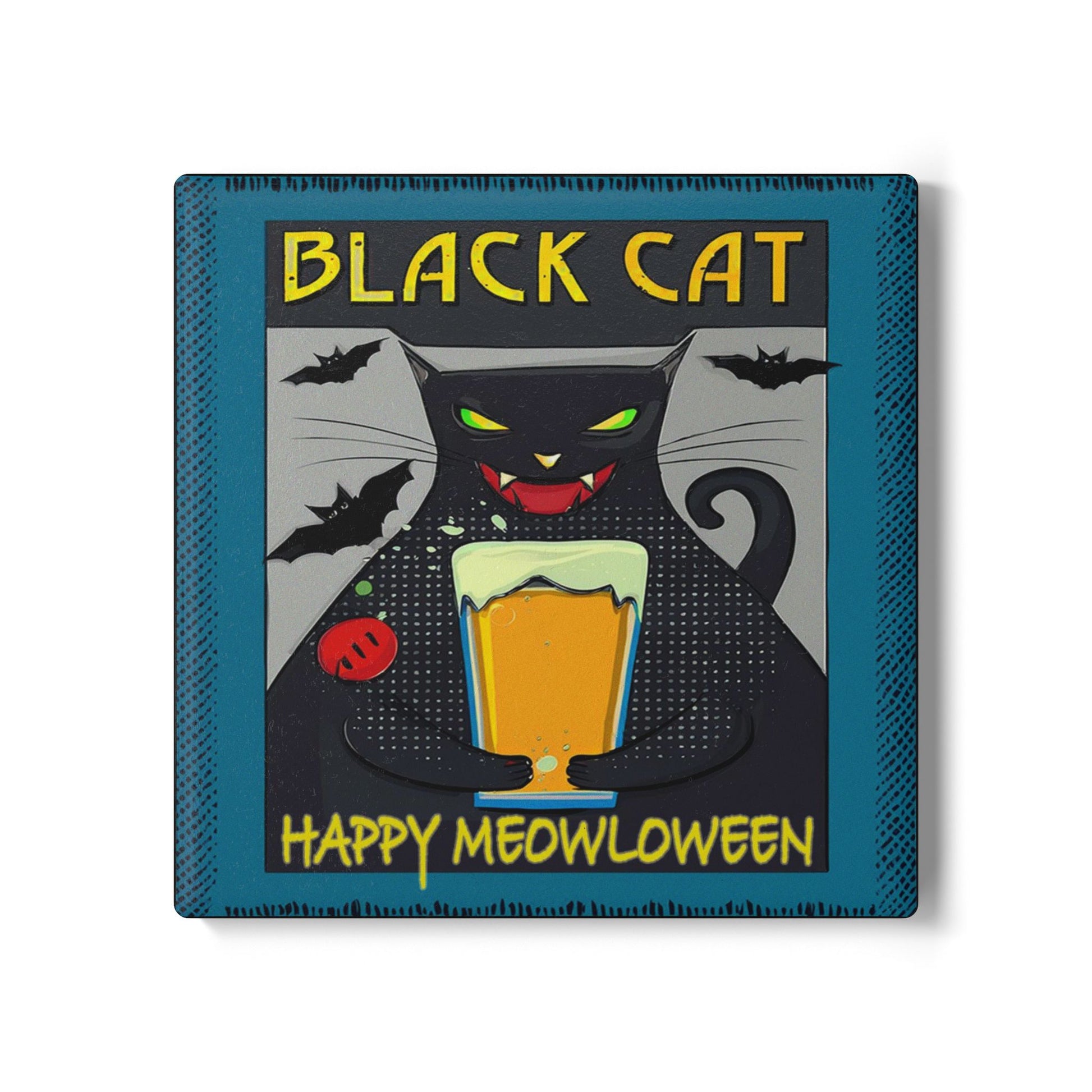 Halloween Cat Coaster, Black Cat Decor, Fall Home Accessories, Funny Gifts for Cat Lovers, Meowloween Party Decor